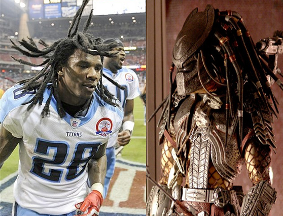 Since being drafted in 2008, Chris Johnson has been kicking ass and taking names in the NFL without giving quarter. The slippery and super fast Johnson is a menace to defenses everywhere, he is always a threat to break any run and go the distance, in any other year, Johnson’s quest for 2,000 yards would put him directly in line for the MVP trophy. In the Predator movies, the eponymous alien has come to earth in search of trophies himself, hunting trophies that is, of the people he hunts. Interestingly, Kevin Peter Hall who played the Predator was 7′ 2″ and prior to filming Predator had just finished up shooting on Harry and the Hendersons. All I know is that faced with either of these guys chasing you there isn’t much chance of making it out alive.